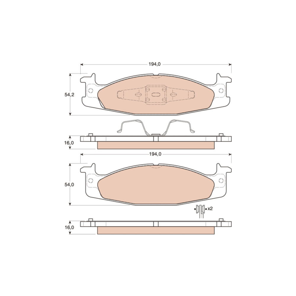 • ESPESOR DE PASTILLA EXTERIOR: 16.4 mm